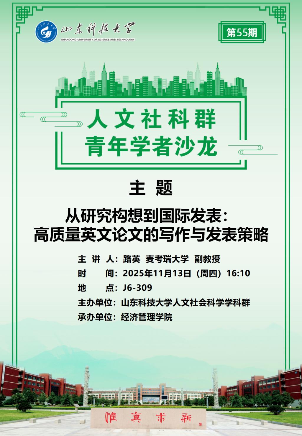 【经管大讲堂】:从研究构想到国际发表:高质量英文论文的写作与发表策略