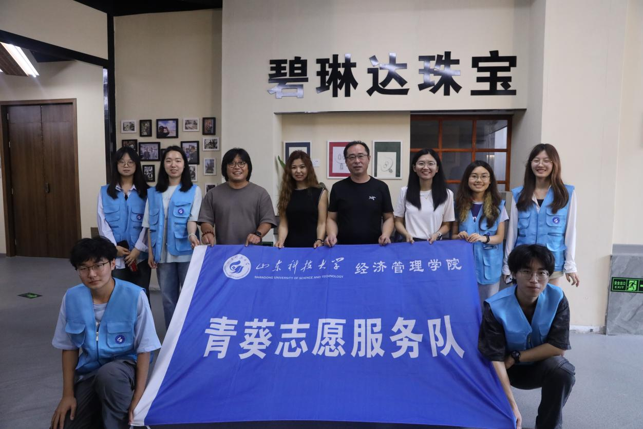 7月9日,伟德体育官网辅导员范文洁及新媒体运营校外指导教师陈恺带领青葵志愿服务队先后赴崂山杨掌柜海洋科技有限公司与青岛碧琳达珠宝有限公司开展企业参访活动。