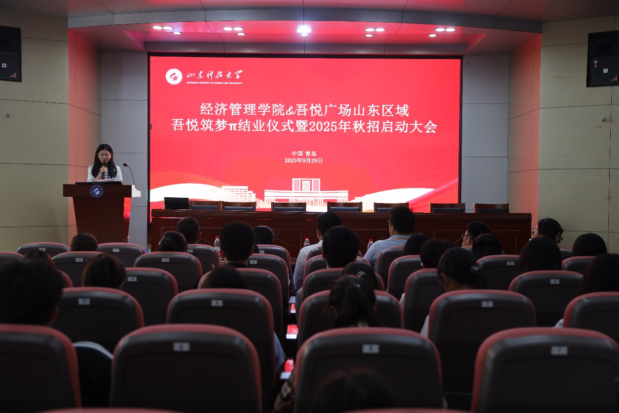 9月29日,伟德体育官网于学院楼433报告厅开展吾悦筑梦π结业仪式暨2025年秋招启动大会活动。学院党委副书记江谭、团委书记曲长胜、辅导员范文洁,吾悦广场山东区域行政人事副总经理李甲荣、人力资源副总监王浩然,吾悦广场代表范媛、孙良帅以及“吾悦筑梦π”优秀学员代表、各年级本科生代表参加。