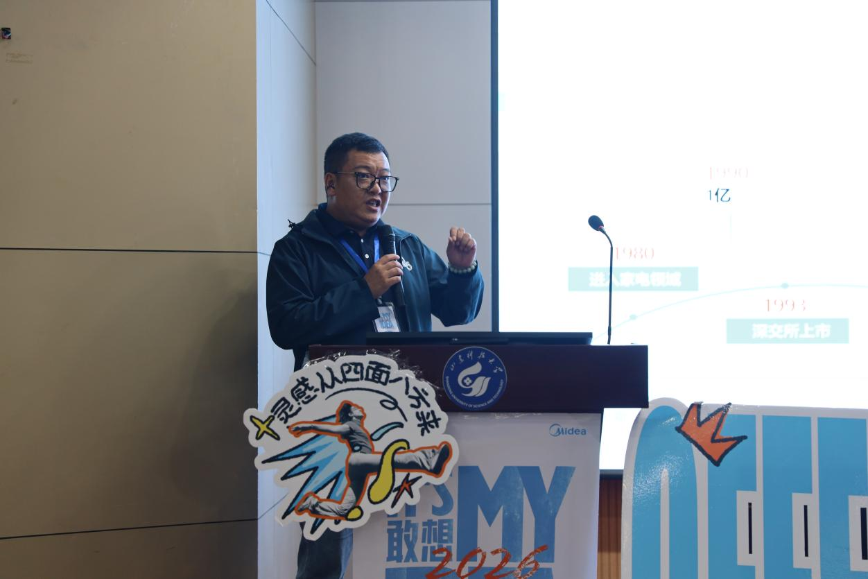 10月13日,伟德体育官网在学院楼四楼报告厅举办美的集团专场就业宣讲会。美的集团安得智联营销经理李龙江、青岛分公司财务主管刘新宁、济南分公司HRBP主管魏鑫担任主讲人,2026届毕业生参加活动。