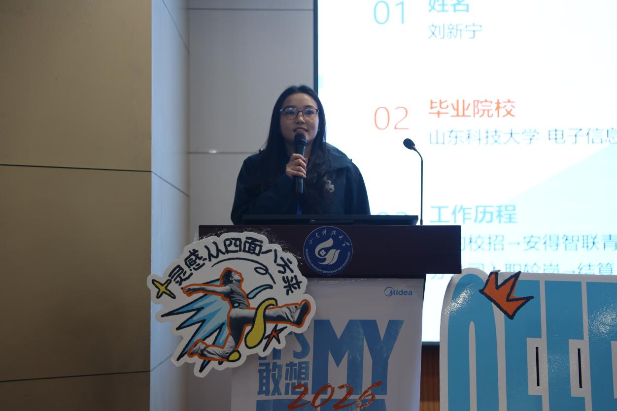 李龙江系统介绍了企业发展历程、综合实力、文化理念以及当前岗位需求,帮助同学们了解企业发展脉络、创新方向与人才引进策略。校友刘新宁结合个人实际工作经历,从日常工作内容、薪资福利体系、职业成长计划等方面,分享了入职心得体会与职业成长经验。互动环节中,同学们积极提问,现场氛围融洽。