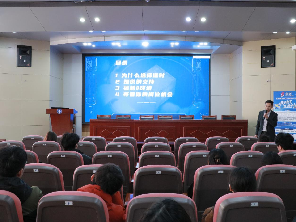 王志宝系统介绍了逢时科技的文化理念、产业布局及品牌优势,帮助同学们了解企业发展脉络及全产业链布局。张传刚结合自身在岗经历,从日常工作内容、薪资福利体系、成长支持计划等方面,分享了入职以来的心得体会与职业发展路径。互动环节,同学们积极提问,王志宝、张传刚予以细致解答,现场气氛热烈融洽。